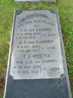 1.1.2.4.1 Gerben Sierks van Kammen is geboren op 06-10-1876 in St Jacobiparochie, zoon van Sierk Gerbens van Kammen en Trijntje Westra. Hij overleed op 28-01-1903, 26 jaar oud en werd begraven in St Jacobiparochie. Gerben Sierks trouwde, 22 jaar oud, op 18-05-1899 in Het Bildt met Dieuwkje Pothuisje, geboren op 17-09-1877. Het huwelijk is na een paar jaar ontbonden want zij huwt opnieuw in 1913. Gerben bleef alleen en werd bij zijn ouders begraven.