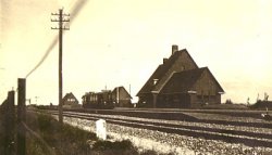 We steken de Hoofdweg over. Op eerstvolgend kruispunt links. We zien rechts van de weg een markant gebouw: het station Harkstede van het voormalig Woltjerspoor. Aangelegd tussen 1924 en 1929 als verbinding tussen Groningen en Delfzijl. En nog voor de aanleg was voltooid al achterhaald door het personenvervoer over de weg en de concurrentie van de spoorlijn Groningen-Oldenburg. Het is dan ook nooit een succes geweest en de lijn werd in 1939 alweer gesloten. De rails werden in 1942 door de Duitsers verwijderd en afgevoerd.