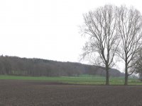 De heuvelrug waarop Bad Bentheim ligt komt in zicht. De Alte Postweg gaat rechtsaf via Sch�ttorf naar Bad Bentheim, wij laten Sch�ttorf voor wat het is en gaan linksaf langs de Oude Vecht (in het Duits: Vechte) en de nieuwe Vecht.