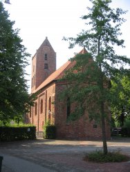 Het oude wierdedorp Baaierm met smalle kronkelende straatjes en oude kerk (13e eeuw). Langs de gracht van het oude borgterrein van de Luingaborg verlaten we het dorp in zuidelijke richting naar Holwierde. Bij het verlaten van het dorp komen we weer langs de dorpsmarkering. Deze is zelfs opgesierd met poes!